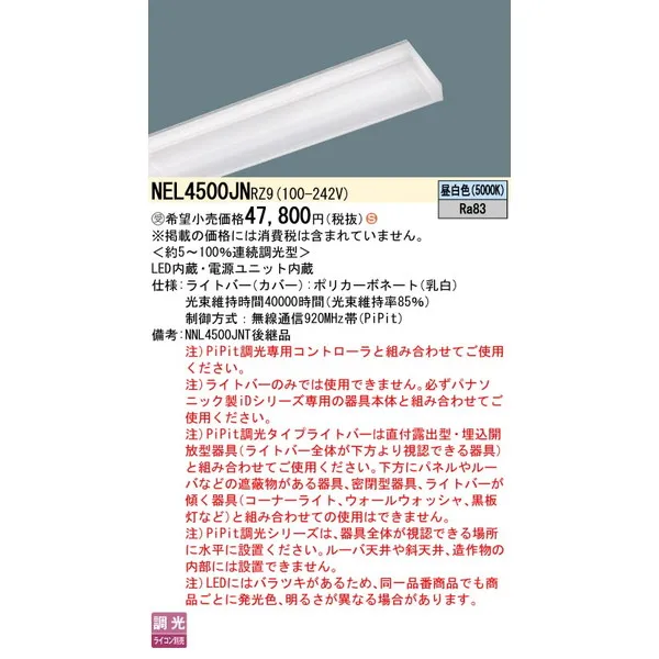 パナソニック 施設照明器具 LEDベースライト ライトバー NEL4500JNRZ9