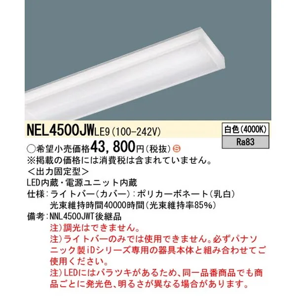 パナソニック 施設照明器具 LEDベースライト ライトバー NEL4500JWLE9