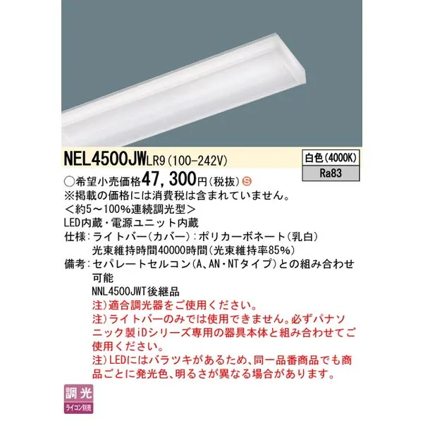 パナソニック 施設照明器具 LEDベースライト ライトバー NEL4500JWLR9