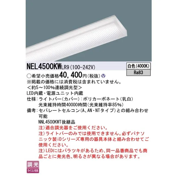 パナソニック 施設照明器具 LEDベースライト ライトバー NEL4500KWLR9
