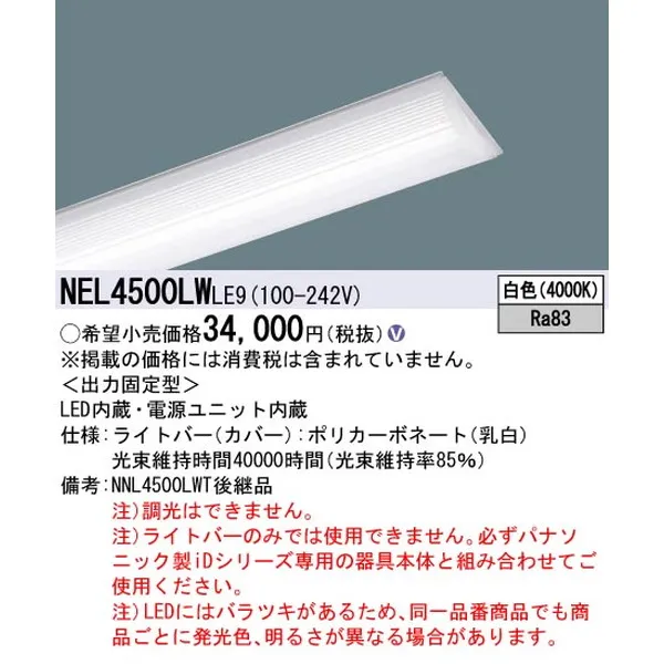 パナソニック 施設照明器具 LEDベースライト ライトバー NEL4500LWLE9