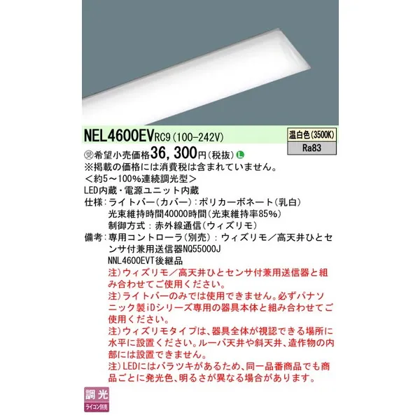 パナソニック 施設照明器具 LEDベースライト ライトバー NEL4600EVRC9