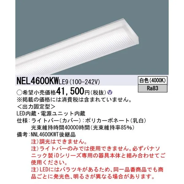 パナソニック 施設照明器具 LEDベースライト ライトバー NEL4600KWLE9