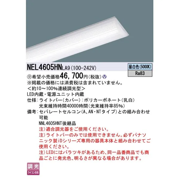 パナソニック 施設照明器具 LEDベースライト ライトバー NEL4605HNLA9