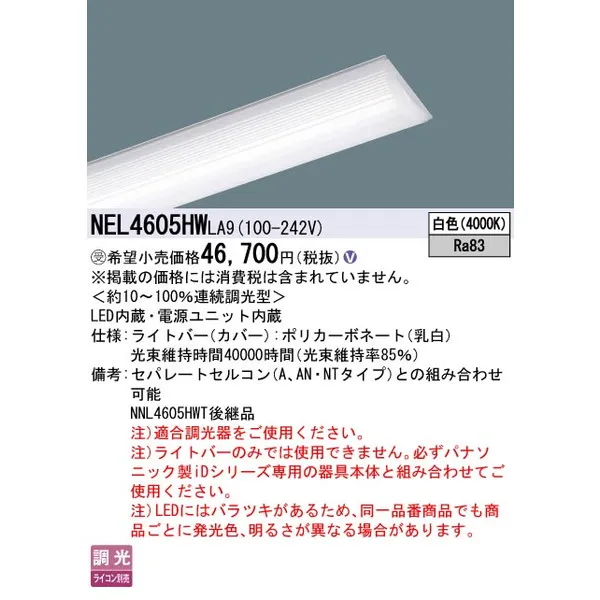 パナソニック 施設照明器具 LEDベースライト ライトバー NEL4605HWLA9