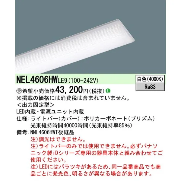 パナソニック 施設照明器具 LEDベースライト ライトバー NEL4606HWLE9