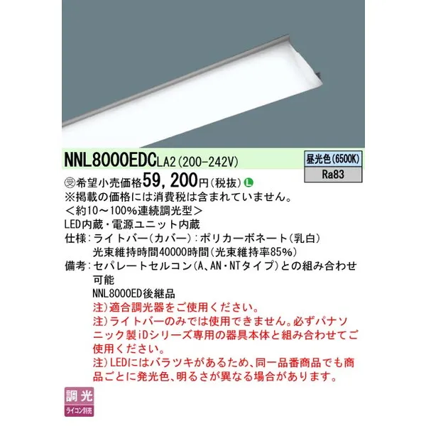 パナソニック 施設照明器具 LEDベースライト ライトバー NNL8000EDCLA2