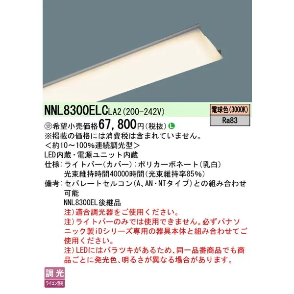 パナソニック 施設照明器具 LEDベースライト ライトバー NNL8300ELCLA2