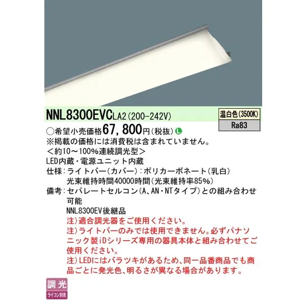 パナソニック 施設照明器具 LEDベースライト ライトバー NNL8300EVCLA2
