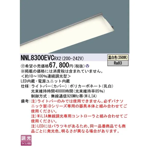 パナソニック 施設照明器具 LEDベースライト ライトバー NNL8300EVCRX2