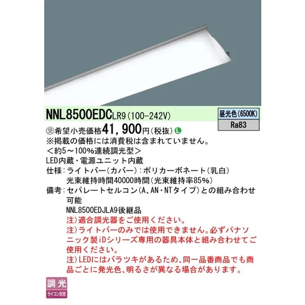 パナソニック 施設照明器具 LEDベースライト ライトバー NNL8500EDCLR9