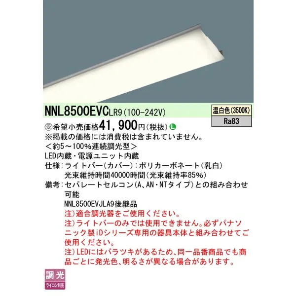 パナソニック 施設照明器具 LEDベースライト ライトバー NNL8500EVCLR9