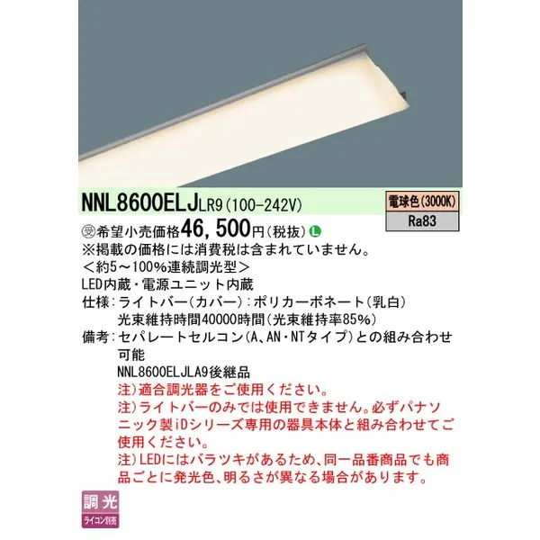 パナソニック 施設照明器具 LEDベースライト ライトバー NNL8600ELJLR9