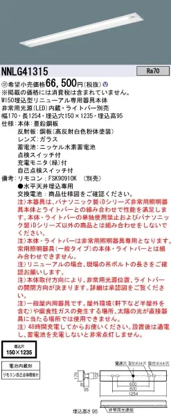 注)本器具は、パナソニック製iDシリーズ非常用照明器具本体とライトバーとの組み合わせで性能を満足します。本体・ライトバーの単独使用禁止およびパナソニック製iDシリーズ以外の商品とは組み合わせをしないでください。 注)本体・ライトバーは非常用照明器具専用となります。常用照明器具(一般タイプ)の本体・ライトバーとは組み合わせできません。