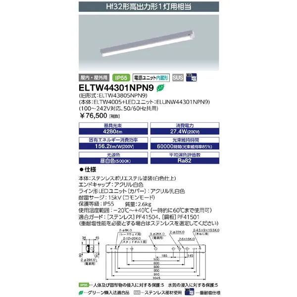 岩崎電気 LEDベースライト レディオック マルチライン トラフ形 1000mmタイプ (ステンレス) 昼白色 ELTW44301NPN9