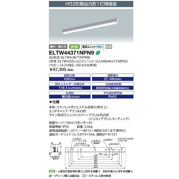 岩崎電気 LEDベースライト レディオック マルチライン オイルミスト対応形 1000mmタイプ (ステンレス) 昼白色ELTW44371NPN9
