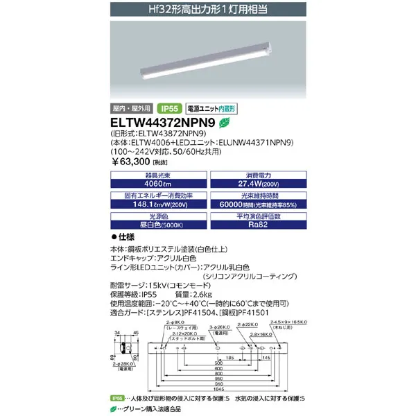 岩崎電気 LEDベースライト レディオック マルチライン オイルミスト対応形 1000mmタイプ (鋼板) 昼白色 ELTW44372NPN9