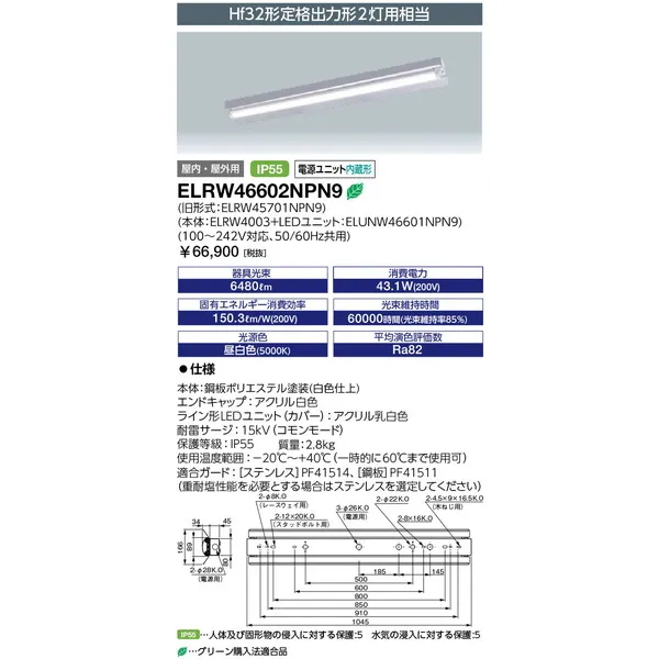 岩崎電気 LEDベースライト レディオック マルチライン 笠付形 1000mmタイプ (鋼板) 昼白色 ELRW46602NPN9