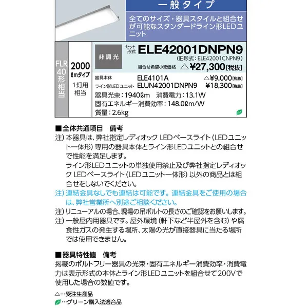 岩崎電気 LEDベースライト 埋込下面開放形 W150 昼白色 FLR40形相当 ELE42001DNPN9