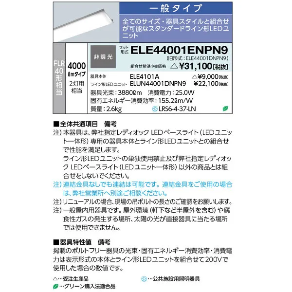 岩崎電気 LEDベースライト 埋込下面開放形 W150 ELE44001ENPN9