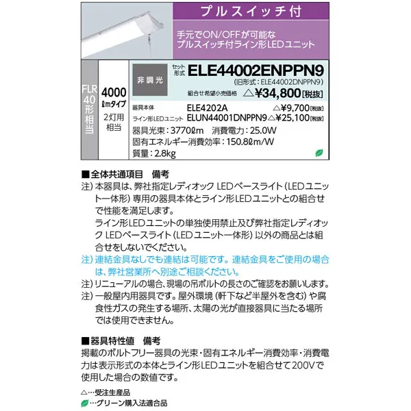 岩崎電気 LEDベースライト 埋込下面開放形 W220 昼白色 FLR40形相当 2灯相当 ELE44002ENPN9