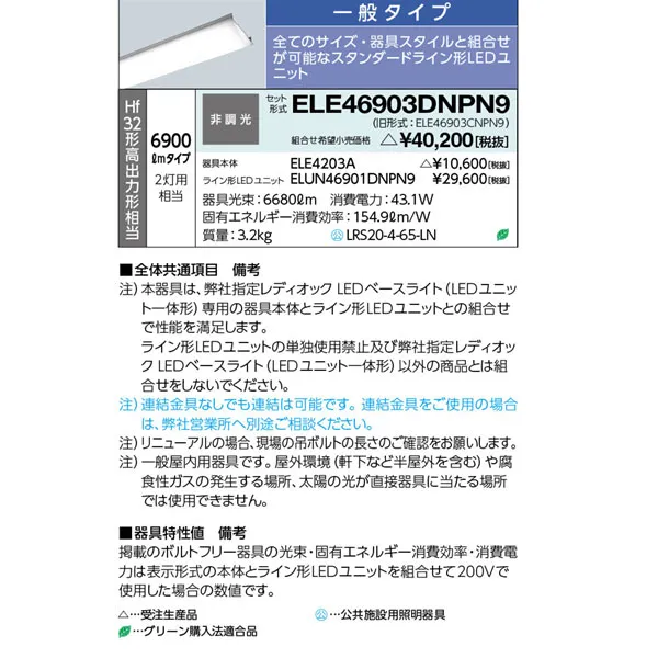 岩崎電気 LEDベースライト 埋込下面開放形 W300 昼白色 Hf32形高出力形相当 2灯相当 ELE46903DNPN9