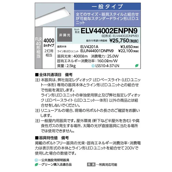 岩崎電気 LEDベースライト 40W形 逆富士形 W230 昼白色 FLR40形相当 ELV44002ENPN9