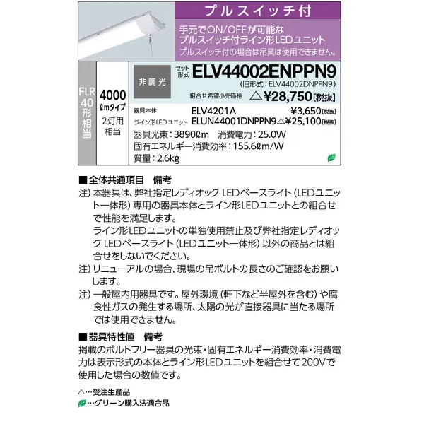岩崎電気 LEDベースライト 40W形 逆富士形 W230 昼白色 FLR40形相当 プルスイッチ付 ELV44002ENPPN9