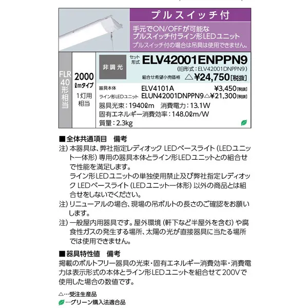 岩崎電気 LEDベースライト 40W形 逆富士形 W150 昼白色 FLR40形相当 プルスイッチ付 ELV42001ENPPN9