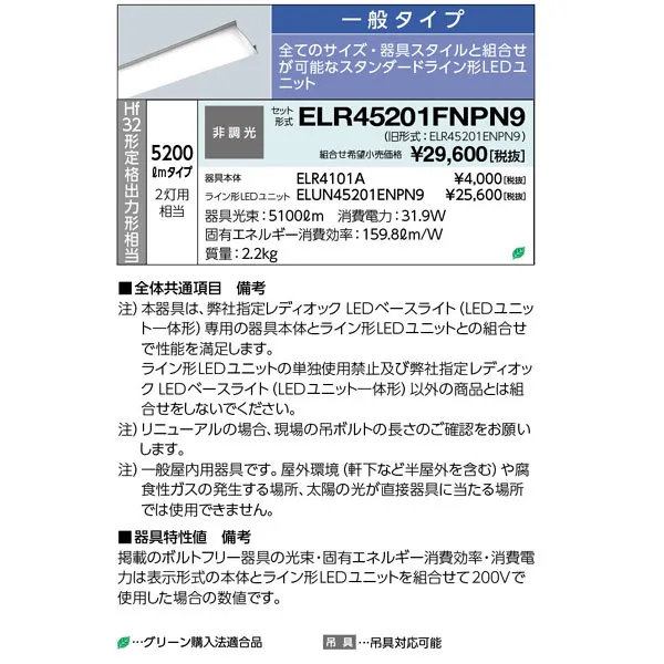 岩崎電気 LEDベースライト 40W形 笠付形 昼白色 Hf32形定格出力形相当 ELR45201FNPN9