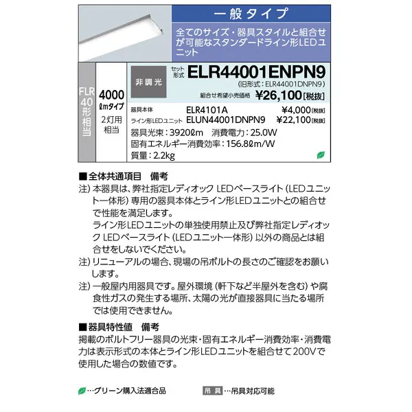岩崎電気 LEDベースライト 40W形 笠付形 昼白色 FLR40形相当 ELR44001ENPN9