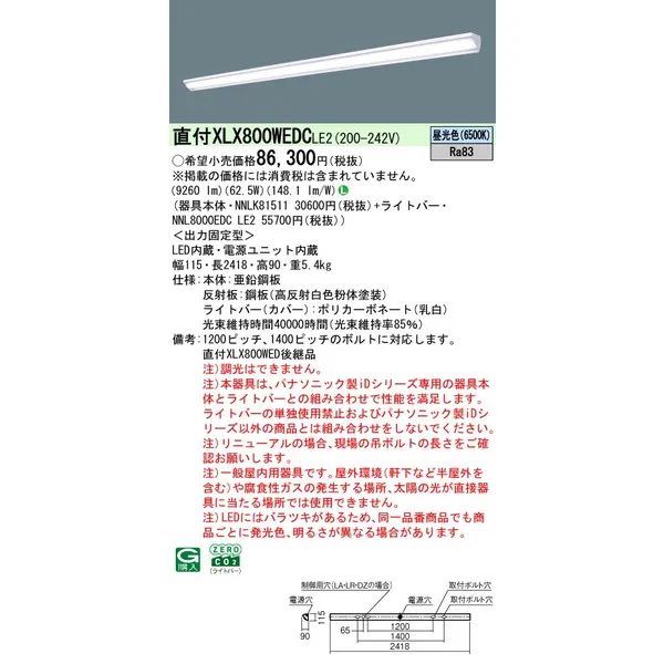 パナソニック iDシリーズ 天井直付型 110形 一体型LEDベースライト ウォールウォッシャ XLX800WEDCLE2 昼光色(6500K)