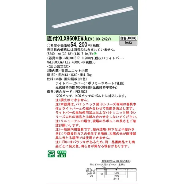 パナソニック iDシリーズ 天井直付型 110形 一体型LEDベースライト 反射笠付 XLX860KEWJLE9 白色(4000K)