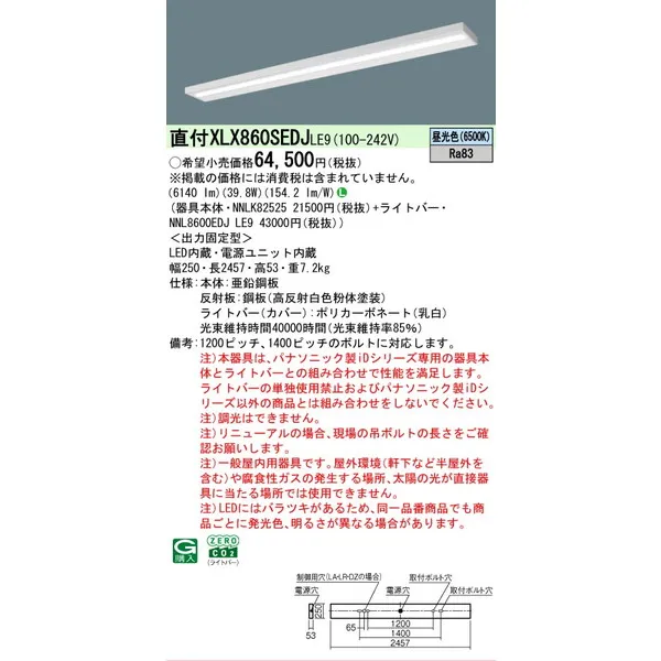 パナソニック iDシリーズ 天井直付型 110形 一体型LEDベースライト スリムベース XLX860SEDJLE9 昼光色(6500K)