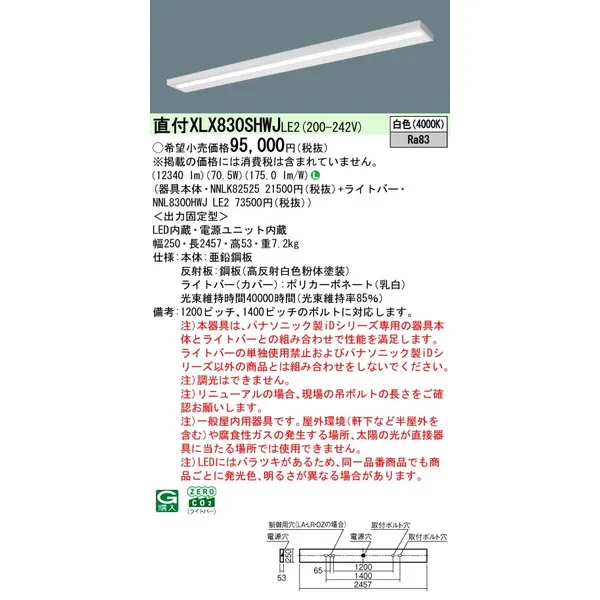 パナソニック iDシリーズ 天井直付型 110形 一体型LEDベースライト スリムベース XLX830SHWJLE2 白色(4000K)
