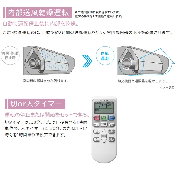 セットしておくと冷房・除湿運転後に、エアコン内部を乾燥させる運転を行います。