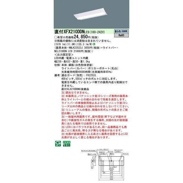 パナソニック iDシリーズ 天井直付型 20形 一体型LEDベースライト Dスタイル W230 富士型 XFX210DDNLE9 昼白色(5000K)