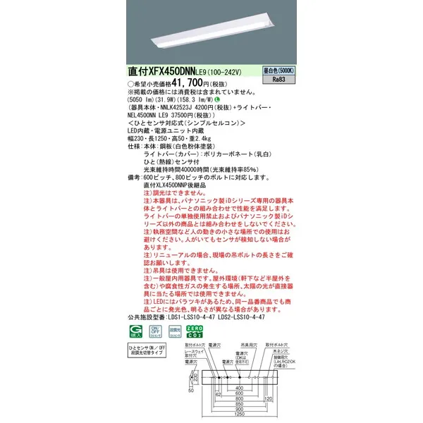 パナソニック iDシリーズ 天井直付型 40形 一体型LEDベースライト Dスタイル W230 富士型 XFX450DNNLE9 温白色(3500K)
