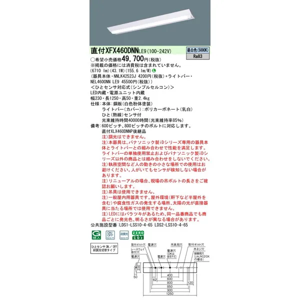パナソニック iDシリーズ 天井直付型 40形 一体型LEDベースライト Dスタイル W230 富士型 XFX460DNNLE9 昼白色(5000K)