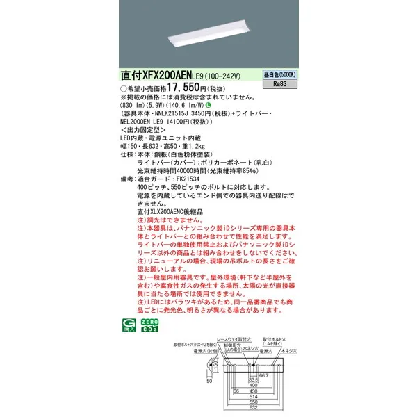 パナソニック iDシリーズ 天井直付型 20形 一体型LEDベースライト Dスタイル W150 富士型 XFX200AENLE9 昼白色(5000K)