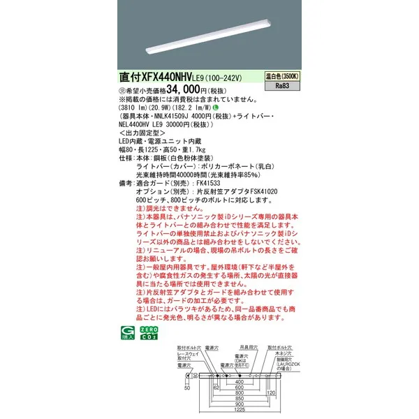 パナソニック iDシリーズ 天井直付型 40形 一体型LEDベースライト iスタイル W80 XFX440NHVLE9 温白色(3500K)