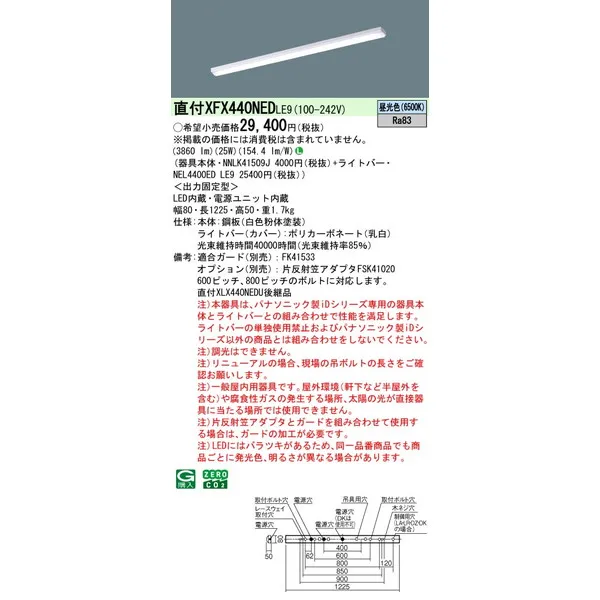 パナソニック iDシリーズ 天井直付型 40形 一体型LEDベースライト iスタイル W80 XFX440NEDLE9 昼光色(6500K)