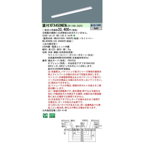 パナソニック iDシリーズ 天井直付型 40形 一体型LEDベースライト iスタイル W80 XFX450NENLE9 昼白色(5000K)