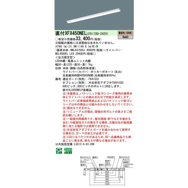 パナソニック iDシリーズ 天井直付型 40形 一体型LEDベースライト iスタイル W80 XFX450NELLE9 電球色(3000K)
