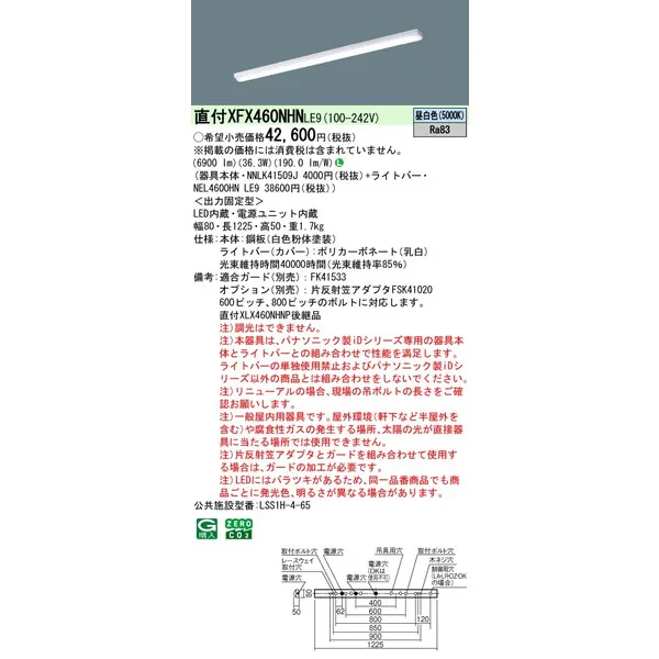 パナソニック iDシリーズ 天井直付型 40形 一体型LEDベースライト iスタイル W80 XFX460NHNLE9 昼白色(5000K)