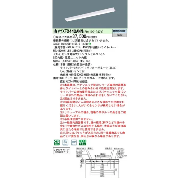 パナソニック iDシリーズ 天井直付型 40形 一体型LEDベースライト Dスタイル W150 富士型 XFX440ANNLE9 昼白色(5000K)