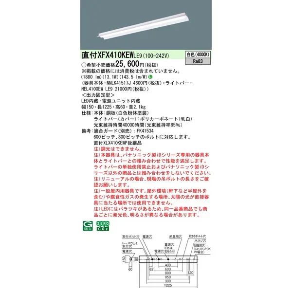 パナソニック iDシリーズ 天井直付型 40形 一体型LEDベースライト 反射笠付 XFX410KEWLE9 白色(4000K)