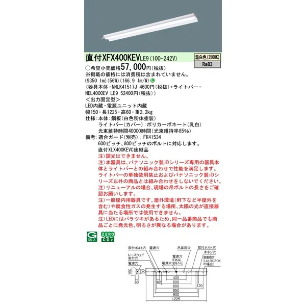 パナソニック iDシリーズ 天井直付型 40形 一体型LEDベースライト 反射笠付 XFX400KEVLE9 温白色(3500K)