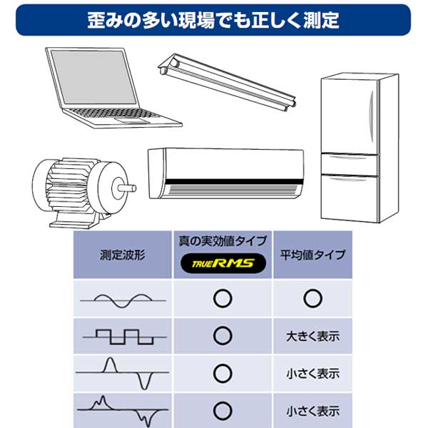 ■歪んだ波形でも正確に測定できる真の実効値測定