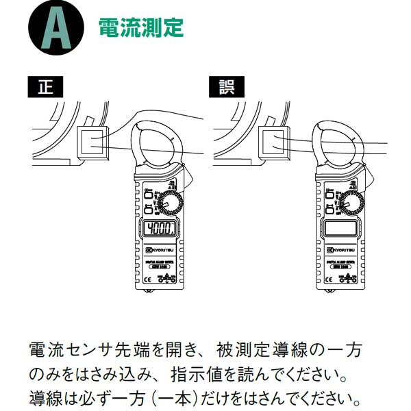*1:交流電流・交流電圧:CF≦2.5 正弦波以外の波形は基本波に対して 45~65Hz:1.5%+5dgt加算、40Hz~1kHz:3.0%+5dgt加算交流電流 40.00/400.0/1000A(3レンジオート)